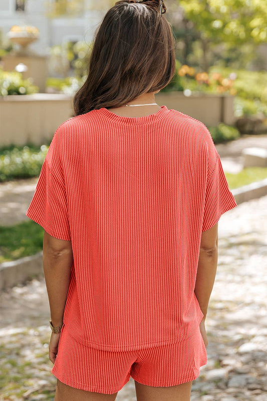 LDC Ribbed Textured Knit Loose Fit Tee and Shorts Set