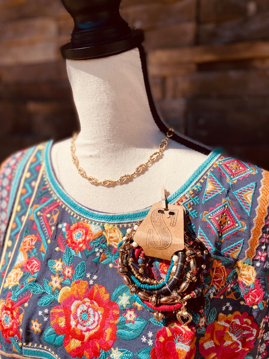 L/S Embroidered Peplum Blouse with Tassles