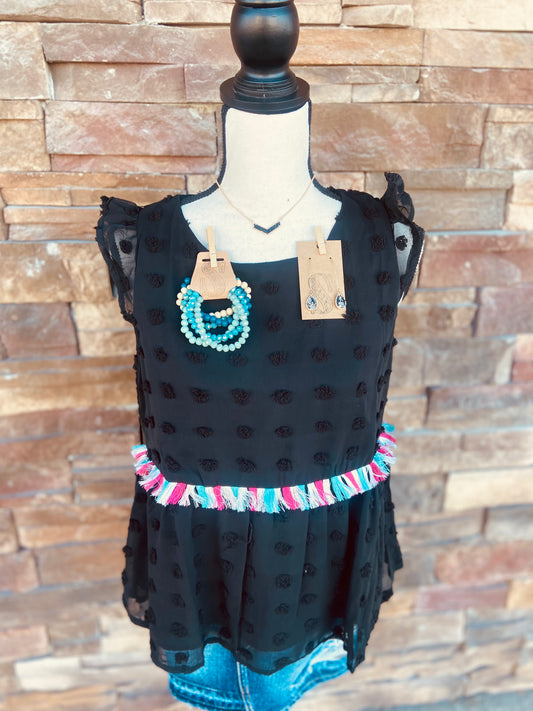 Babydoll S/S Top with Colorful Tassles
