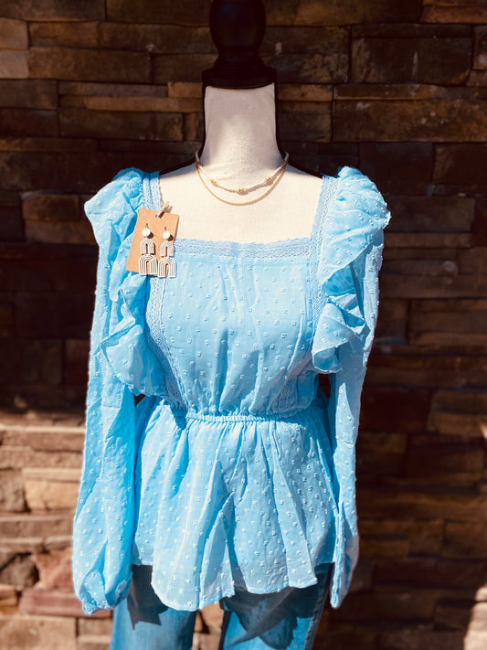 Swiss Dot L/S Top with Ruffles