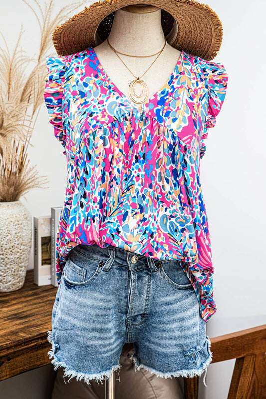 Fashion-W Boho Pattern Flounce V Neck Tank Top