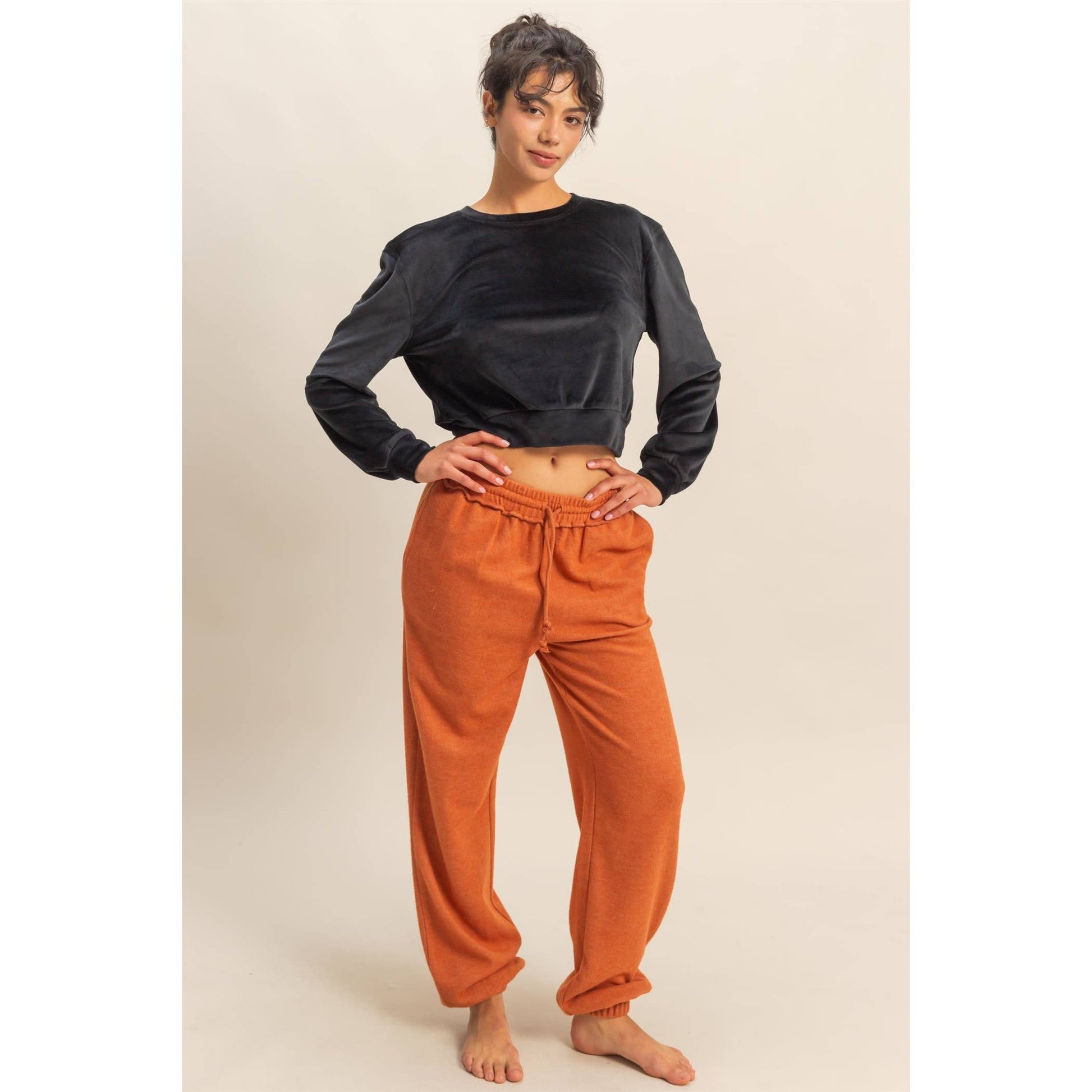 A crew neckline, drop shoulders and long sleeves with cinched cuffs, the relaxed-fit bodice creates an effortless look, while the cropped hem adds style.