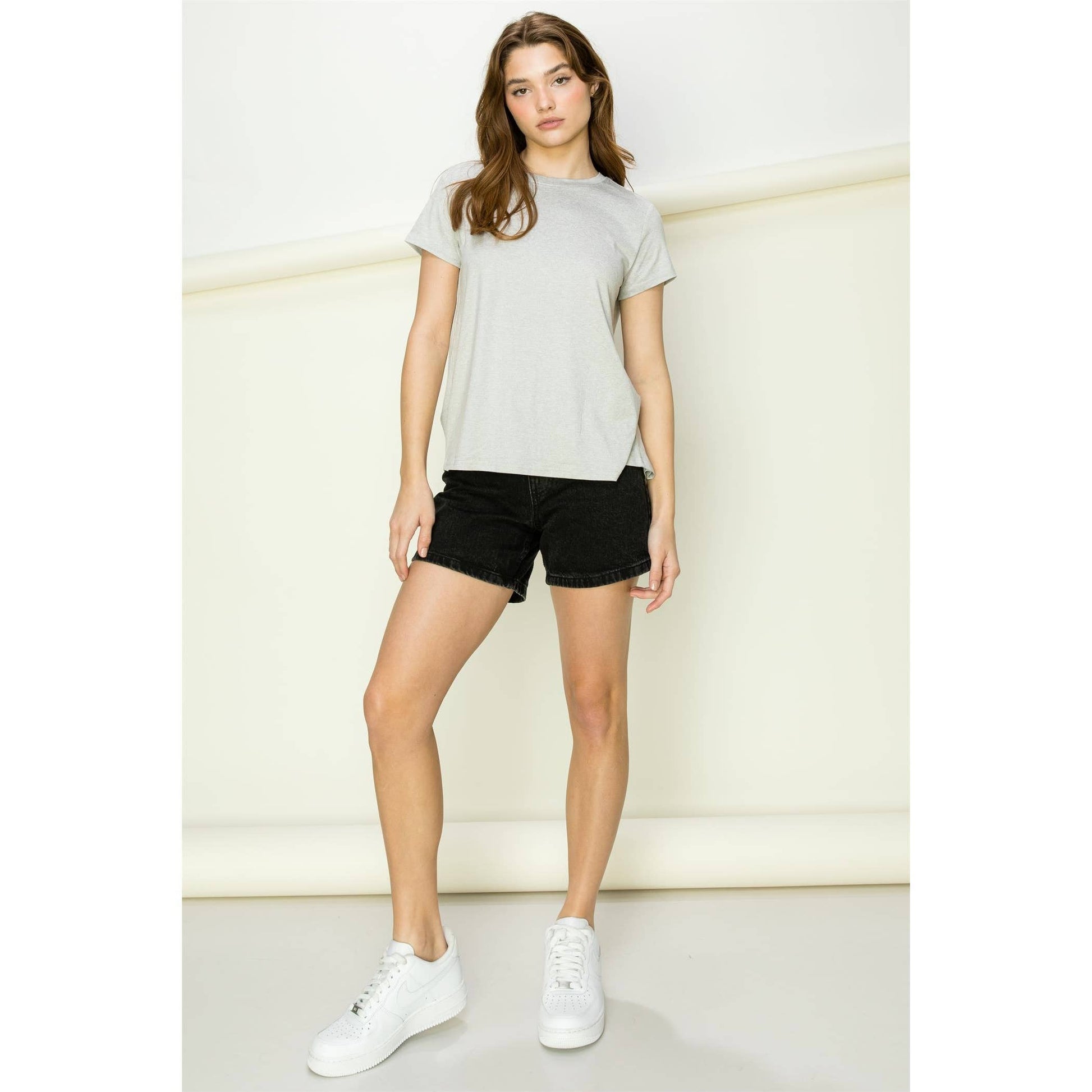 Upgrade Your Basics With The All Yours Short Sleeve Tee. Made With A Classic Round Neck, It Features Cute Short Sleeves And A Relaxed Bodice For You To Look Effortless. The Open Slit At The Back Will Add A Little Something Extra To Your Look!