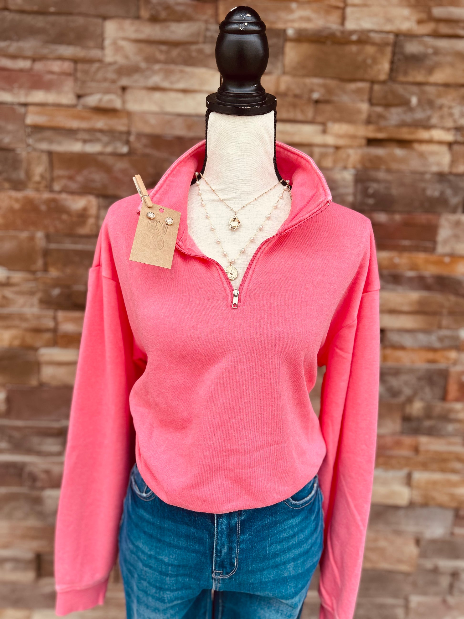 Half-Zip Burnout French Terry Pullover Top